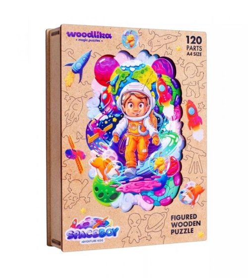 Farebné, poučné a napínavé - také by mali byť detské puzzle . Iste vás zaujme viac ako sto výrazne farebných detailov s úžasnými vzormi . Prekvapte svoje dieťa skvelým darčekom. Snáď každý chlapec sa niekedy túžil stať kozmonautom. Jednotlivé dieliky puzzle pomôžu vášmu dieťaťu ponoriť sa do sveta vesmírnych dobrodružstiev a objavov. Každý dielik drevených puzzle má jedinečné a presné fantastické tvary – od rôznych druhov kúzelných paličiek po hviezdy či magické zvieratá. 120 dielikov z kvalitného dreva, z toho 35 dielikov zaujme deti svojimi originálnymi tvarmi . Skladanie puzzle zlepšuje pamäť, pozornosť a motoriku dieťaťa . Je dokázané, že tiež pozitívne ovplyvňuje mozgovú činnosť detí. Tie pri hre ani nevnímajú, že sa tým zároveň aj učia a rozvíjajú svoju predstavivosť.