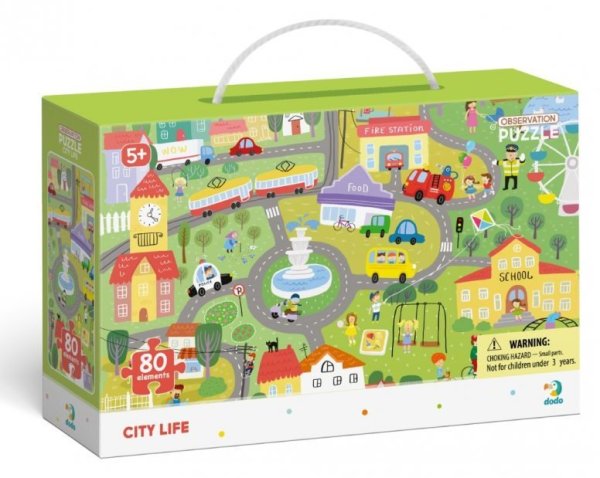 Poskladajte puzzle a nájdite všetky budovy, dopravné prostriedky..., ktoré sú vyobrazené na obrázku. Farebný a detailne ilustrovaný obrázok s hľadacou hrou (možno hrať viacerými spôsobmi: hľadanie na obrázku, vo viacerých deťoch kto nájde skôr, na čas..), rozvíja slovnú zásobu, pamäť a koncentráciu. Puzzle obsahuje 80 dielikov Rozmer zložené puzzle: 45 x 31 cm Rozmer krabičky: 25 x 16 x 6 cm Vhodné od 5 rokov