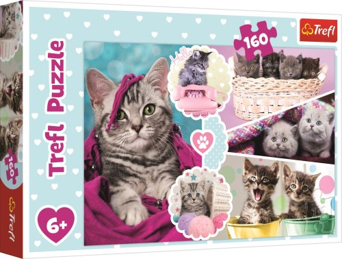 Puzzle obsahuje 160 dielikov s motívom mačičiek/mačiatok. Veľkosť zloženého obrázku je 41 x 27,5 cm. Puzzle zdokonaľujú sústredenie, jemnú motoriku, orientáciu v priestore i fantázii vášho dieťaťa a to si tak, popri skvelej zábave, zdokonaľuje svoje kognitívne aj kreatívne schopnosti. Rozmery balenia: 29 x 19 x 4 cm Vhodné pre deti od 6 rokov