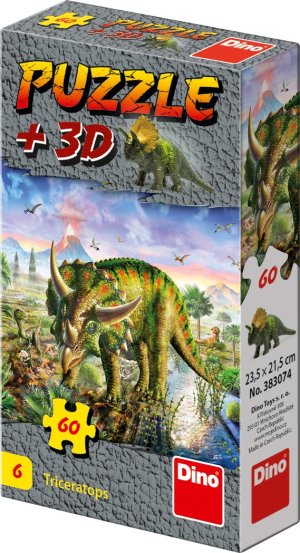 Mini-Puzzle Dinosaury: Triceratops (balené v malej krabičke) Zložte si 6 motívov vždy s rôznou figúrkou dinosaura.
