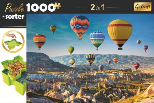 Komplet puzzle a triediče na dieliky urobí radosť každému fanúšikovi skladania. Puzzle má 1000 dielikov. Triedič na puzzle - to je šesť praktických nádobiek v tvare puzzle dielika: - jednoduché a prehľadné triedenie puzzle podľa tvaru alebo farieb, - efektívna organizácia - po skladaní je možné priehradky jednoducho naskladať na seba, stohovať, - pohodlné prenášanie a skladovanie - triedič aj s dielikmi je možné uschovať späť do krabice, zaberajú menej miesta a dieliky sa nestratia, - veľkosť jednej nádobky je 19x19 cm.
