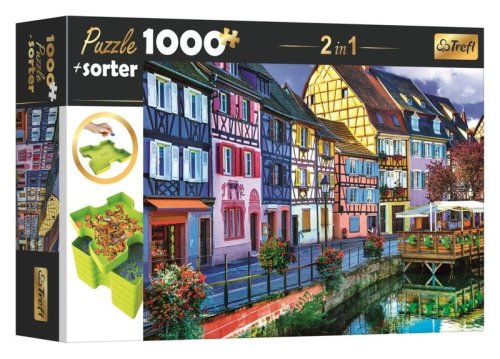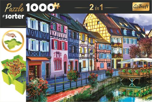 Komplet puzzle a triediče na dieliky urobí radosť každému fanúšikovi skladania. Puzzle má 1000 dielikov. Triedič na puzzle - to je šesť praktických nádobiek v tvare puzzle dielika: - jednoduché a prehľadné triedenie puzzle podľa tvaru alebo farieb, - efektívna organizácia - po skladaní je možné priehradky jednoducho naskladať na seba, stohovať, - pohodlné prenášanie a skladovanie - triedič aj s dielikmi je možné uschovať späť do krabice, zaberajú menej miesta a dieliky sa nestratia, - veľkosť jednej nádobky je 19x19 cm.