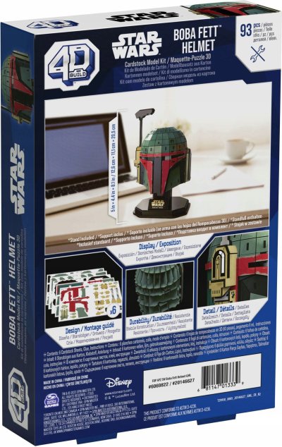 Pre fanúšikov Star Wars – táto 4D figúrka Boby Fetta si priamo hovorí o vystavení na vašej poličke! Vydajte sa na epické dobrodružstvo s naším modelom zo sveta Star Wars vo filmovej kvalite. Táto súprava 4D Build obsahuje všetky detaily vo filmovej kvalite, ktoré poznáte z filmov, ak tomu ešte lepidlo a stojan! Získate 6 dosiek s 93 vyberateľnými dielikmi a jednoduchý návod na zostavenie. Nie je potrebné žiadne náradie! Rozmery helmy Boby Fetta sú 12,6 × 11,1 × 20,5 cm. Skvele sa hodí ako dekorácia do spálne, herne alebo ako ozdoba narodeninového večierka s tematikou Star Wars – hrdo si svoju helmu vystavte. Pre nových mladých fanúšikov Star Wars – toto puzzle je perfektným darčekom pre každého dospievajúceho superfanúšika. A pre dospelých fanúšikov pôvodných figúrok zo sveta Star Wars tiež predstavuje perfektnú hračku. Či už milujete svetelné meče, Mandaloriana, Baby Yodu alebo Darth Vadera, táto 4D helma Boby Fetta je priamo pre vás. Pozrite sa na ďalšie modely zo sveta Star Wars určené pre dospievajúcich od 14 rokov. Puzzle 4D Build je tiež fantastickým darčekom k narodeninám pre mužov a darčekom pre neho! Vytiahnite svetelný meč, aby ste si užili akčnú zábavu, a začnite stavať!