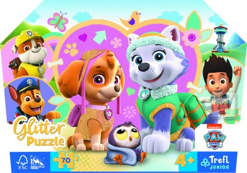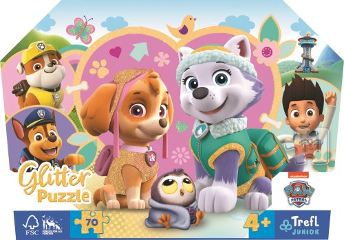 Detské puzzle s jemnými zlatými trblietkami, obsahujú 70 dielikov. Balené v dekoratívnom kufríku s praktickou rukoväťou na prenášanie. Poskladaním puzzle vznikne obrázok s rozmermi 410 × 275 mm. Pre deti 4+.