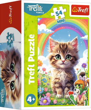 Mini-Puzzle (dieliky 2,2 cm, balené v malej krabičke) zo série Treflíci. Rozmer zloženého puzzle cca 13 x 20 cm