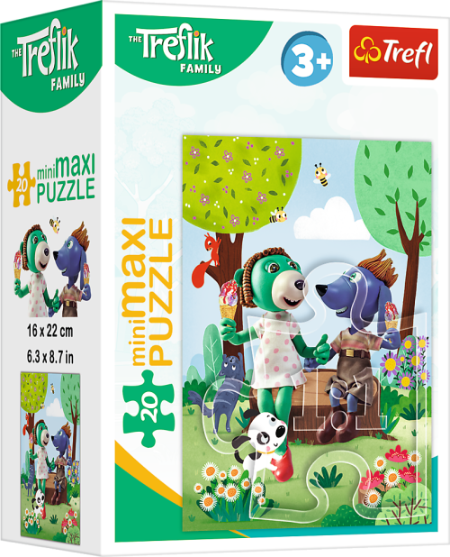 Mini maxi Puzzle (dieliky 4,2 cm, balené v malej krabičke) zo série Treflíci. Rozmer zloženého puzzle cca 16 x 22 cm