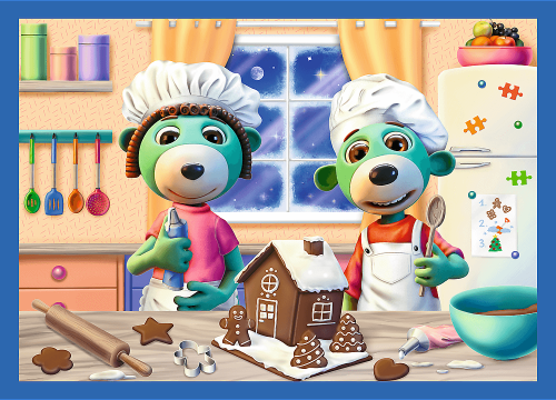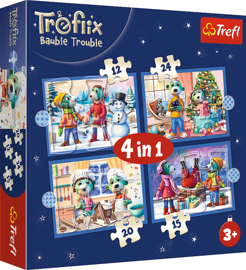 Progresívne puzzle s rôznou obtiažnosťou - 4 puzzle s 12 - 24 dielikmi, s vyšším počtom dielikov sa zmenšuje ich veľkosť. Rozmer zloženého puzzle cca 28,5 x 20,5 cm