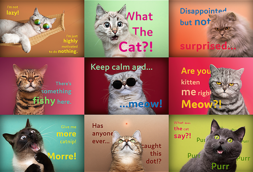 Puzzle - Vtipné mačacie výrazy. Počet dielikov: 1500 Rozmer zloženého puzzle: cca 85 x 58 cm Rozmer balenia: 27 x 40 x 6 cm