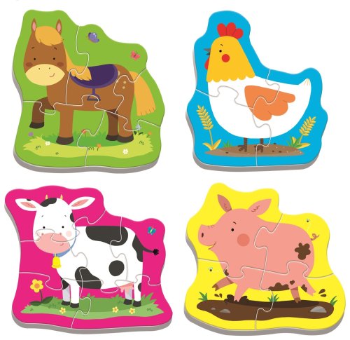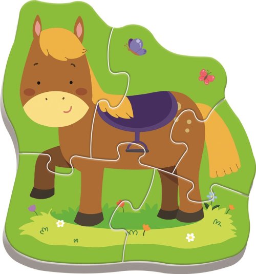 Veľké a pevné dieliky s hrúbkou až 4mm. Puzzle pre najmenších obsahuje 4 obrázky s rôznym počtom dielikov. Vhodné od 2 rokov.