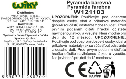 Klasická skladacia farebná pyramída s krúžkami pre najmenšie deti. Hračka, s ktorou sa precvičí aj motorika dieťaťa. Vyrobené zo zdravotne nezávadného plastu.