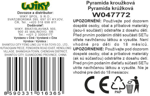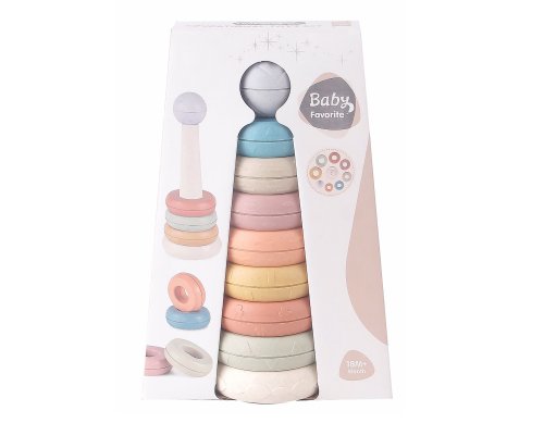 Pyramída krúžková. Rozmery veže 8x2x20,7 cm. Balenie obsahuje 8 krúžkov.