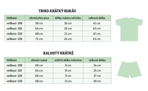 Pyžamo krátky rukáv, krátke nohavice materiál 95% Bavlna, 5% Elastan 180g/m2 pranie na 40 ° C šetrné odstreďovanie sušiť v sušičke neodporúčame žehliť do 110 ° C Pyžamo s krátkym rukávom pre našich najmenších.