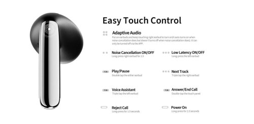 Adaptive Hybrid Active Noise Cancellation Po zapnutí ANC sa bezdrôtové slúchadlá automaticky prispôsobia vášmu zvukovodu, dynamicky detekujú zmeny okolitého hluku a stavu nosenia a dynamicky upravujú a prispôsobujú najvhodnejšie parametre potlačenia hluku v reálnom čase, čím zaistia, že okolitý hluk je účinne eliminovaný. Konštrukcia tiež zahŕňa vodotesnú a adaptívnu štruktúru proti vetru IPX5, takže sú ideálne pre outdoorové aktivity.