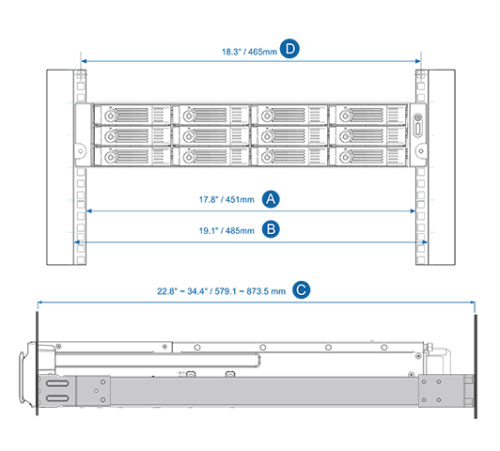 Rackové sady sú kompatibilné iba so serverovými čajkami so štvorcovými otvormi 9,5 x 9,5 mm.
