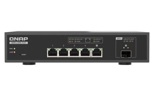 *Podporuje 10G Multi-Gig - štyri porty 10GbE RJ45 (10G/5G/2,5G/1G/100M) a jeden kombinovaný port 10GbE SFP+ (10G/1G)/RJ45 (10G/5G/2,5G/1G/100M). *Upgrade šírky pásma - podporuje agregáciu liniek LACP s celkovou šírkou pásma až 20 Gb/s, zvládne vysokorýchlostnú prevádzku od strihárskych tímov a viac NAS zariadení. *Podporuje ACL, prihlásenie Qfinder Pro a správu SNMP pre zaistenie bezpečnosti pripojenia k sieti a zariadenia pomocou centralizovanej správy a údržby sieťových zariadení. *Prioritizácia prevádzky - inteligentné plánovanie QoS/CoS/DSCP zaisťuje neprerušovaný VoIP, streamovanie a zálohovanie. Segmentácia VLAN zvyšuje efektivitu oddelenia v sieti. *Plynulé streamovanie - podporuje IGMP Snooping a 12K jumbo rámcov, navrhnuté pre prostredie s viacerými streamami IPTV a NVR, zaisťuje plynulé prehrávanie a bezproblémový výkon NAS. *Online aktualizácie firmvéru - systém QSS (QNAP Switch System) a Qfinder Pro umožňujú kontrolu a aplikáciu aktualizácií firmvéru jedným kliknutím, čím udržujú systém bezpečný a aktuálny. *Energetická úspornosť -podpora IEEE 802.3az Energy Efficient Ethernet (EEE) pre dynamické zníženie spotreby energie podľa sieťovej prevádzky – vyváženie výkonu a úspory energie.