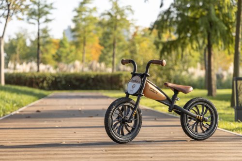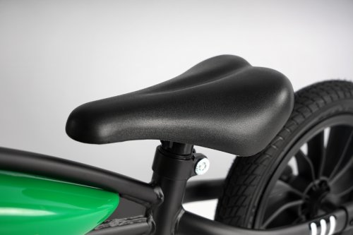 Nafukovacie 12-palcové kolesá zabezpečujú stabilitu a bezpečnosť na akomkoľvek povrchu. Špeciálny mechanizmus (guličkové ložisko) umožňuje ľahké otáčanie kolies bez zablokovania. Bicykel je vybavený nastaviteľným, pohodlným sedlom, ktoré kopíruje rast dieťaťa.