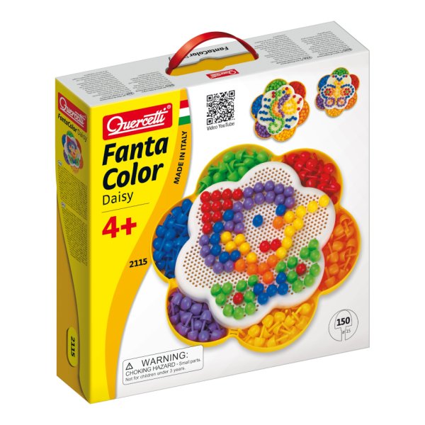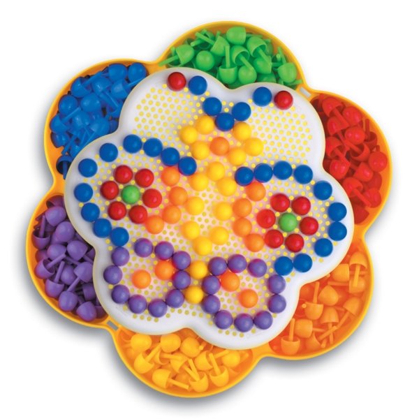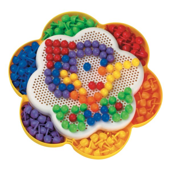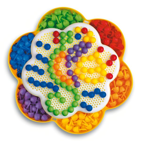 S mozaikou môžu deti kreatívne relaxovať pri tvorbe rozmanitých obrázkov. Umiestňovaním rôznofarebných kolíčkov do dierovanej dosky, či už s pomocou priložených predlôh, alebo vlastnej fantázie, môžu rozvíjať predstavivosť, sústredenie a trpezlivosť. Vďaka praktickému baleniu v podobe kvety je možné mozaiku ľahko upratať, zároveň aj pred tvorbou vytriediť štipce podľa farieb. Vyrobené z kvalitného plastu, ktorý je pevný, odolný a zároveň nezávadný. Hlavné vlastnosti: 150 kolíčkov (6 farieb) a predlohypraktické balenievyrobené v Taliansku