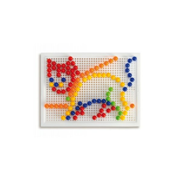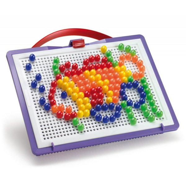 Mozaiky u detí rozvíjajú jemnú motoriku, tvorivosť a fantáziu. Skladajú sa z kufríka, perforovanej hracej dosky a farebných kolíčkov s hlavičkami rôznych farieb, priemerov a tvarov. Pomocou týchto kolíčkov, ktoré sa zasadzujú do otvorov v hracej doske, tvoria deti rôzne obrázky alebo vzory. Po skončení hry je možné všetko uložiť do kufríka, ktorého veko po zaistení poistkou tvorí sama hracia doska. Vyrobené z plastov špičkovej kvality. Hlavné vlastnosti: rozvíja jemnú motoriku, tvorivosť a fantáziu obsahuje 150 gombíkov s priemerom 10 mm