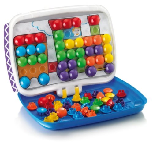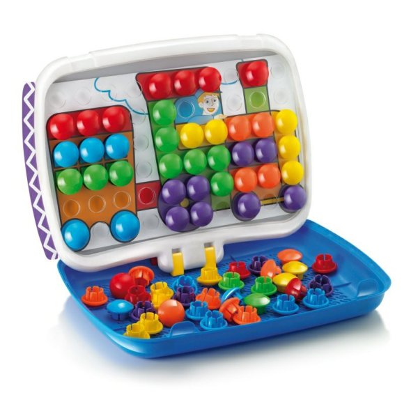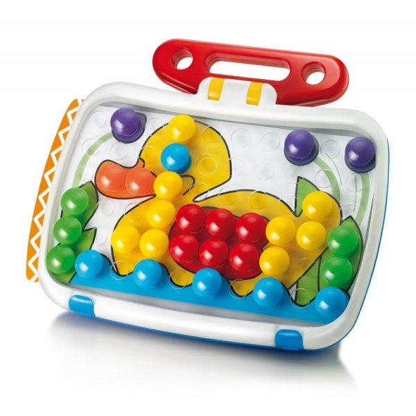 Rozšírený variant mozaík FantaColor Junior. Dve hry v jednom veľkom multifunkčnom kufríku: z jednej strany mozaika so šiestimi obojstrannými predlohami, určená deťom už od 2 rokov, rozvíjajúca vizuomotorickú koordináciu, jemnú motoriku a tvorivé myslenie, z druhej strany veľká biela kresliaca tabuľa pre za sucha mazateľné fixky. Jednoduchými, intuitívnymi pohybmi je možné podložku zdvihnúť, sklopiť a obrátiť na druhú stranu. Vďaka špeciálnemu madlu je kufrík prenosný a vhodný na cesty. Combi Junior má veľmi pekný, atraktívny design. Všetko je vyrobené bez ostrých hrán, čo zaisťuje bezpečné používanie hračky. Hlavné vlastnosti: rozvíja vizuomotorickú koordináciu a motoriku2v1 - mozaika a kresliaca tabuľka obsahuje 60 veľkých nerozbitných gombíkov s priemerom 3 cm