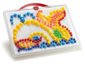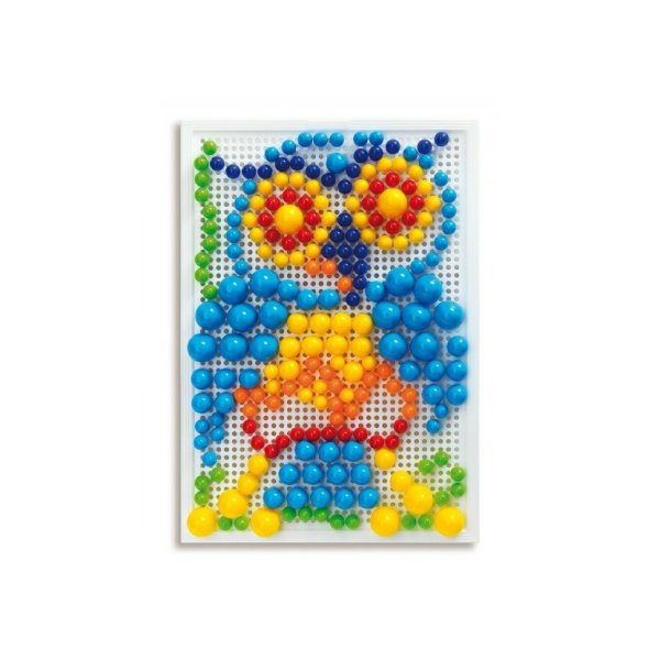 Mozaiky u detí rozvíjajú jemnú motoriku, tvorivosť a fantáziu. Skladajú sa z kufríka, perforovanej hracej dosky a farebných kolíčkov s hlavičkami rôznych farieb, priemerov a tvarov. Pomocou týchto kolíčkov, ktoré sa zasadzujú do otvorov v hracej doske, tvoria deti rôzne obrázky alebo vzory. Po skončení hry je možné všetko uložiť do kufríka, ktorého veko po zaistení poistkou tvorí sama hracia doska. Vyrobené z plastov špičkovej kvality. Hlavné vlastnosti: rozvíja jemnú motoriku, tvorivosť a fantáziu obsahuje 280 gombíkov s priemerom 10, 15, 20 mm
