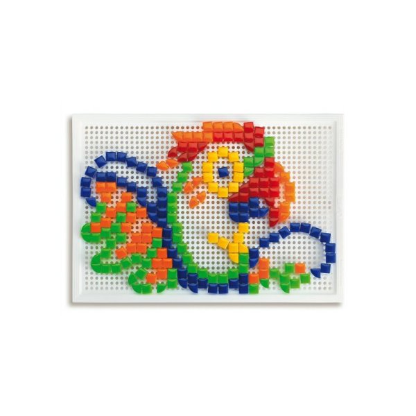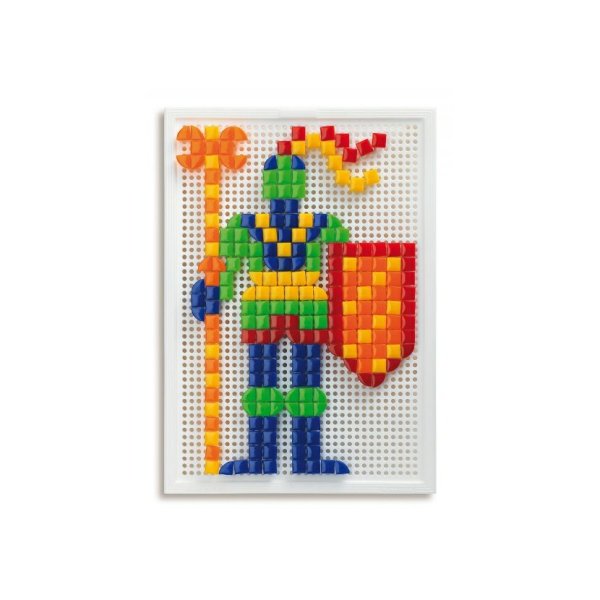 Mozaiky u detí rozvíjajú jemnú motoriku, tvorivosť a fantáziu. Skladajú sa z kufríka, dierovanej hracej dosky a farebných kolíčkov s hlavičkami rôznych farieb, priemerov a tvarov. Pomocou týchto kolíčkov, ktoré sa zasadzujú do otvorov v hracej doske, tvoria deti rôzne obrázky alebo vzory. Po skončení hry je možné všetko uložiť do kufríka, ktorého veko po zaistení poistkou tvorí sama hracia doska. Vyrobené z plastov špičkovej kvality. Hlavné vlastnosti: rozvíja jemnú motoriku, tvorivosť a fantáziu obsahuje 300 gombíkov v tvare štvorčekov a trojuholníkov