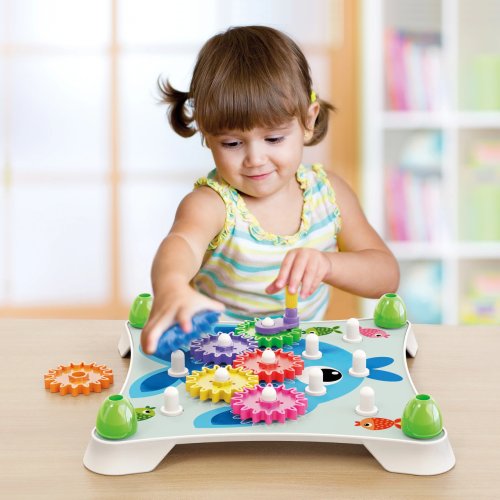 Usporiadajte kartu, zaraďte prevody, otočte kľukou a sledujte veľkolepú reťazovú reakciu, ktorá prekvapí a poteší všetkých detí. Dieťa sa naučí základné princípy mechaniky a užije si pritom veľa zábavy. Nerozbitné a bezpečné. Vyrobené z plastov špičkovej kvality. Obsah balenia:1 biela základňa1 kľučka7 farebných prevodov3 obojstranne ilustrované karty Hlavné vlastnosti: rozvíja jemnú motoriku, tvorivosť, fantáziu a logicko-kombinačné mysleniebalenie obsahuje 13 dielikovpre deti od 2 rokov