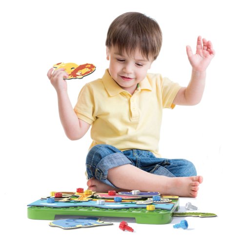 Zažite dobrodružstvo so zvieratkami v divokej džungli či horúcej savane! V tejto detskej stavebnici z perforovaných dielov a prepojovacích skrutiek môžete ľahko zostaviť scenériu ako z divočiny. Čakajú na vás tri tematické pozadia s deviatimi exotickými zvieratami ako napr. lev, hroch či hrozivý krokodíl. Skladanie vlastných obrázkov je veľmi jednoduché a zvládnu ich aj malé ručičky. Upevňovacie skrutky jednoducho utiahnete aj povolíte bez pomoci náradia. Okrem manuálnej zručnosti hračka rozvíja aj fantáziu detí (môžu o zvieratkách rozprávať všemožné príbehy). Hlavné vlastnosti: rozvíja manuálnu zručnosť a kreativitu tému džungle, savana pre deti od 3 rokov obsahuje 33 dielikov