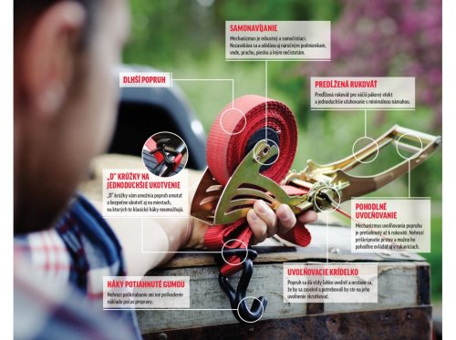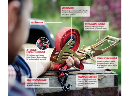 Robustné háky s gumovým poťahom pomáhajú ochrániť náklad pred poškodením, zatiaľ čo univerzálne „D“ krúžky rozširujú možnosti uchytenia – oceníte ich najmä tam, kde klasické háčiky nemožno použiť. Všetky kovové časti sú ošetrené opieskovaným povrchom, ktorý zvyšuje odolnosť voči opotrebovaniu aj korózii – zaručuje tak dlhú životnosť aj pri častom používaní.
