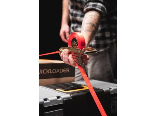 Zaisťovací systém QUICKLOADER® s nosnosťou až 2000 kg a dĺžkou 5 m (v rozsahu 0,8 až 4,2 m) je navrhnutý na profesionálne použitie pri preprave ťažších nákladov. So šírkou 35 mm a odolnou konštrukciou je skvelou voľbou na zaistenie stavebných materiálov, strojov, vybavenia alebo paliet – napríklad na prívesoch, valníkoch alebo v nákladných vozidlách.