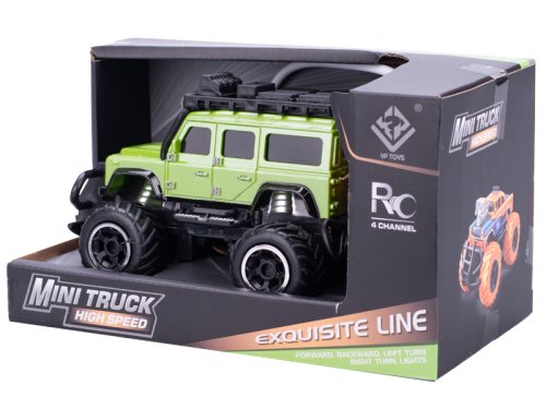 R/C auto terénne 14 cm 1:43 27 MHz plná funkcia na batérie so svetlom - mix farieb (oranžová, zelená)