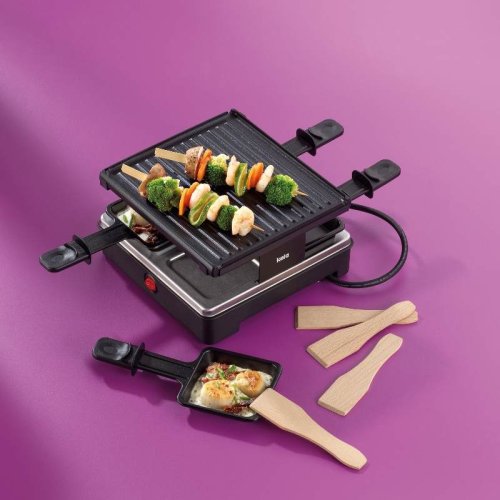 Táto sada na grilovanie je ideálna na prípravu pokrmov pre štyri osoby. Obsahuje liaty hliníkový tanier, štyri nepriľnavé panvice a štyri drevené špachtle. Vďaka kompaktným rozmerom 21,5x21,5 cm a výške 12 cm je ľahko prenosná a vhodná na použitie doma aj na cestách.