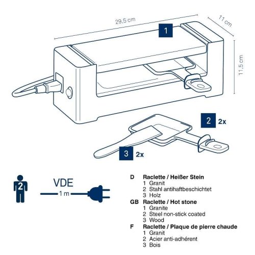 Táto sada na grilovanie je ideálna na prípravu pokrmov pre dve osoby. Obsahuje žulovú dosku, čierne puzdro, dve nepriľnavé panvice a dve drevené špachtle. Vďaka kompaktným rozmerom 33,5x11x11,5 cm je ľahko prenosná a vhodná na použitie doma aj na cestách.