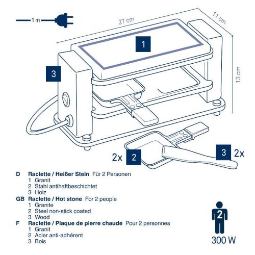 Urobte svoje večery nezabudnuteľné. S týmto elegantným raclette v prírodnom drevenom obale vnesiete na stôl nielen chuť, ale aj extra dávku štýlu. Žulová doska s jednoduchou údržbou je ako stvorená na vyprážanie zeleniny, mäsa a ďalších pochutín priamo pred vašimi očami – ľahko tak vykúzlite kulinárske skvosty.