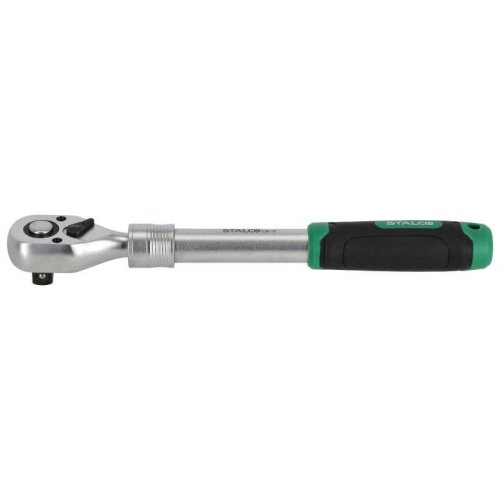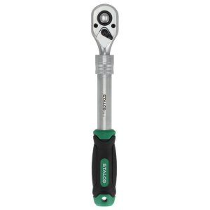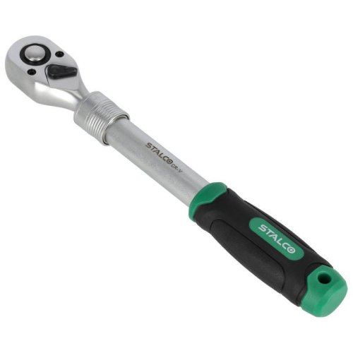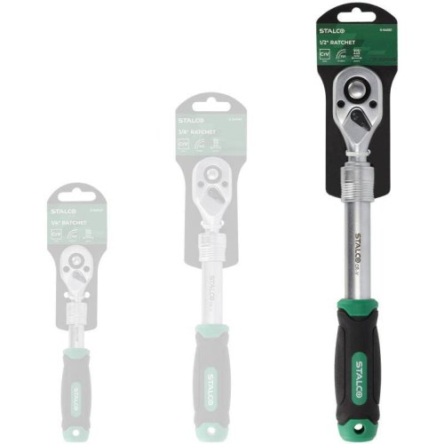 • Univerzálna teleskopická račňa je veľmi užitočný ručný nástroj. Je užitočná pre rôzne úlohy zahŕňajúce uťahovanie a povoľovanie závitových prvkov. Račne sú vybavené stopkami nástrojov, ktoré akceptujú bity s rozmermi 1/4, 3/8 a 1/2 palca. Teleskopická konštrukcia umožňuje dlhšiu dĺžku stopky medzi pracovným koncom a rukoväťou. To uľahčuje prácu v stiesnených priestoroch as väčšou silou. Teleskopická račňa STALCO je vybavená ozubeným mechanizmom s možnosťou zmeny smeru otáčania račne. Má 72 zubov, čo zaisťuje presný chod. Stopka a hlava kľúča sú vyrobené z odolnej CrV ocele, čo zaisťuje trvanlivosť nástroja. STALCO ponúka tri verzie teleskopickej račne. Líšia sa veľkosťou pracovnej stopky a rozsahom pracovných dĺžok.