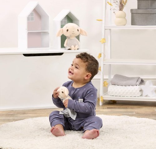 Milujete príbehy Harryho Pottera a jeho priateľov? Chceli by ste do tohto kúzelného sveta vtiahnuť aj svojich najmenších? Potom je tento muchláčik s Dobbym pre Vás to pravé! Iste očarí bábätká aj rodičia. Je vyrobený z tých najmäkších materiálov. Plyšový Dobby s veľkými ušami má krásne vyšívané detaily a viac štruktúrovanú hmatovú látku, ktorá podporuje zmyslovú hru. So šedým muchláčikom v rukách vnesie nádych kúzla do spánku každého bábätka a určite sa stane obľúbeným spoločníkom na maznanie. Hlavné vlastnosti: vhodné od narodeniaskvelý darček pre malých fanúšikov kúzelného sveta Harryho Potteranapomáha k rozvíjaniu zmyslovmäkký plyš, kvalitný materiál