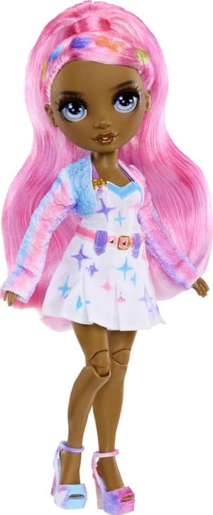 Cieľom Rainbow High je podporovať kreativitu a sebavedomie prostredníctvom farieb. Predstavujeme nový spôsob, ako farebne štylovať bábiku, ktorú môžeš upraviť podľa svojej fantázie. Bábika je celá biela, od hlavy až po päty, čo ti umožní ľahko vytvárať farebné variácie a meniť jej outfit alebo účes znova a znova. Môžeš použiť umývateľné fixky z balenia v Airbrush pištoli alebo kresliť priamo na oblečenie a vlasy. Potom stačí opláchnuť a opakovať. Znova a znova.