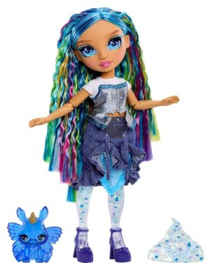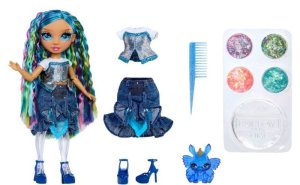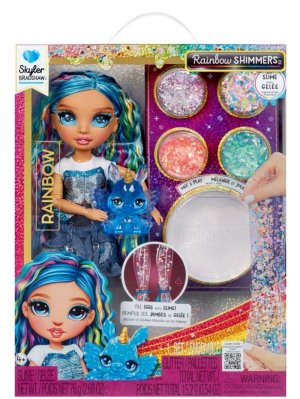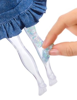 Rainbow High bábiky sú ešte kúzelnejšie! Spoločne so svojimi malými sestričkami objavujú nový svet, nové outfity a úplne nový spôsob hrania. Každá bábika prichádza s priehľadným slizom a štyrmi druhmi trblietok. Trblietky pridaj do slizu a uprav ho podľa svojej fantázie. Potom sliz daj do priehľadných nôh bábiky a sleduj, ako sa jej nohy premenia! Je to také ľahké! Zložte zadnú časť nôh, pridaj sliz, zacvakni nohy späť a môžeš sa hneď hrať! A to najlepšie? Môžeš to robiť znova a znova. Alebo môžeš trblietky a sliz kombinovať medzi rôznymi bábikami. Obsah balenia: bábika Skyler s dlhými vláskami a 5 kĺbmi, 1 outfit, 1 pár topánok, 1 pár náušníc, priehľadný sliz, 4 druhy trblietok, 1 kúzelný maznáčik. Odporúčaný vek 4+