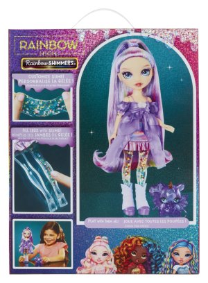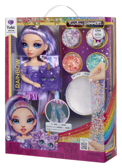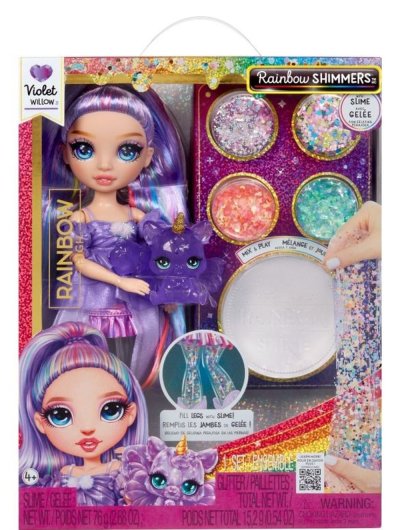 Rainbow High bábiky sú ešte kúzelnejšie! Spoločne so svojimi malými sestričkami objavujú nový svet, nové outfity a úplne nový spôsob hrania. Každá bábika prichádza s priehľadným slizom a štyrmi druhmi trblietok. Trblietky pridaj do slizu a uprav ho podľa svojej fantázie. Potom sliz daj do priehľadných nôh bábiky a sleduj, ako sa jej nohy premenia! Je to také ľahké! Zložte zadnú časť nôh, pridaj sliz, zacvakni nohy späť a môžeš sa hneď hrať! A to najlepšie? Môžeš to robiť znova a znova. Alebo môžeš trblietky a sliz kombinovať medzi rôznymi bábikami.
