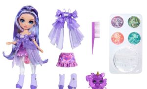 Obsah balenia: • 1 zo 4 bábik s dlhými vláskami a 5 kĺbmi • 1 outfit, 1 pár topánok, 1 pár náušníc • priehľadný sliz • 4 druhy trblietok • 1 kúzelný maznáčik