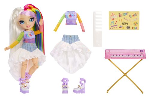 Obsah balenia: • 1 bábika s dlhými vláskami a pohyblivými kĺbmi • 1 hudobný nástroj • 1 hárok so samolepkami