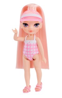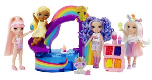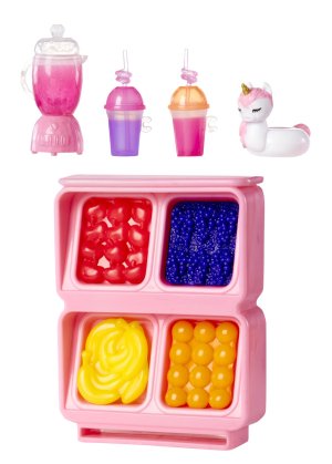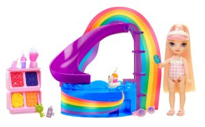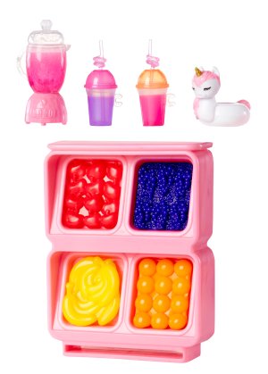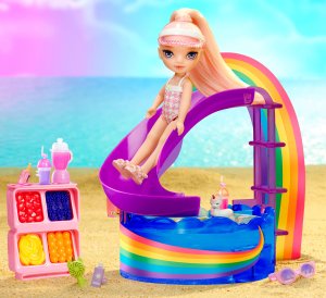 Objav kúzelný svet s hernou sadou s malou sestričkou. Čaká na teba úžasná bábika veľkosti 15 cm a jej bazén. Do bazéna vedie dúhová šmykľavka. Pri smoothie stánku nájdeš mixér, ovocie, šálky a množstvo ďalších doplnkov, vďaka ktorým si užiješ nekonečnú hru. Pri bazéne nájdeš plaváky, slnečník a ďalšie zábavné veci.