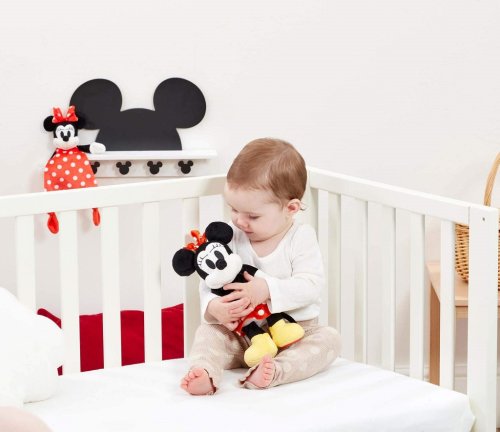 Hrajte sa s Minnie! So zábavnou sediacou plyšovou hračkou Disney Minnie Mouse Activity si užijete množstvo zábavy a hier. Prebuďte svoju malú predstavivosť s touto 18 cm super mäkkou hračkou Activity. Táto super plyšová hračka myška Minnie, láska Mickeyho Mouse, je figúrka zbožňovaná generáciami od roku 1928. Myška Minnie má ikonické rysy a červenú mašľu s bielymi bodkami. Na pravej topánke má textúru šnúrky a na ľavé kruhové zrkadlo. Táto hračka taktiež pomáha rozvoju jemných motorických zručností. Minnie je dokonalou plyšovou kamarátkou, s ktorou si môžete užívať rozprávanie alebo sa len tak pritúliť pred spaním . Hlavné vlastnosti: vhodné od narodenia perfektný ako darček pre novorodenia pomáha k rozvíjaniu zmyslov pomáha raným motorickým zručnosti
