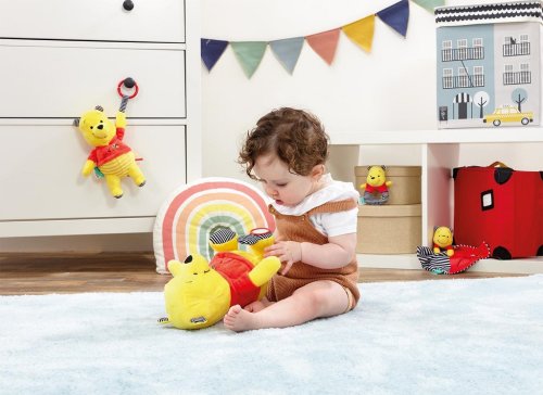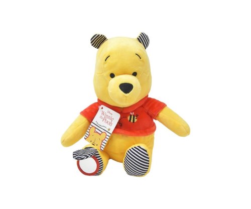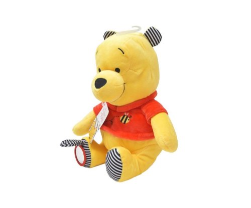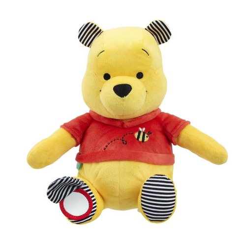 Všetci milujú Macka Pú od Disneyho a táto plyšová hračka je dokonalým spoločníkom, ktorý zabaví tých najmenších. Medvedík má jasne červený svetrík s včelou medonosnou a stimulujúcou čiernobiele pruhované uši a labky. Na jednej labke je malé zrkadlo. Hračka bola vytvorená na podporu raných vývojových zručností dieťaťa . Hlavné vlastnosti: vhodné od narodenia roztomilá plyšová hračka v sýtych farbách ideálna ako darček pre bábätko stimuluje zmysly