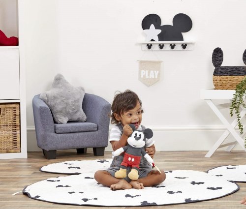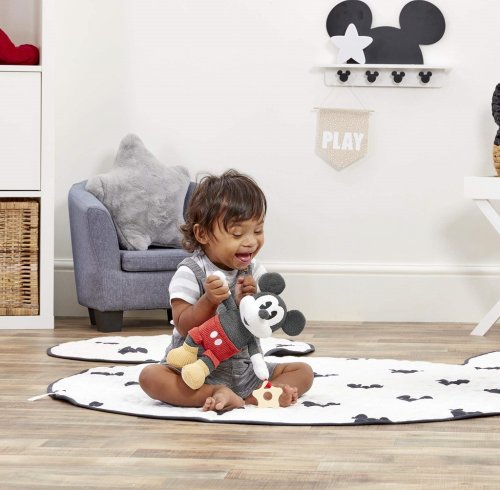 Hrajte sa s Mickeym! So zábavnou plyšovou hračkou Disney Mickey Mouse Activity si užijete množstvo zábavy a hier. Prebuďte svoju malú predstavivosť touto 19 cm super mäkkou hračkou Activity, ktorá oslavuje jednu z najslávnejších svetových kreslených postavičiek všetkých čias. Táto super plyšová hračka Mickey Mouse, zbožňovaná generáciami od roku 1928, ktorá zachytáva jeho ikonické rysy a optimistické, odvážne a roztomilé vlastnosti, je dokonalým parťákom na hranie pre dobrodružstvo vášho najmenšieho! Hryzátko v tvare hviezdy, ktoré je vhodné od narodenia, je pripevnené k Mickeyho ruke. Mickey je oblečený do červených šortiek a má žlté vráskavé topánky, ktoré u detí podporujú hmatové a zmyslové skúmanie prostredníctvom hry. Táto hračka taktiež pomáha rozvoju jemných motorických zručností. Mickey Mouse je tiež dokonalým plyšovým kamarátom, s ktorým si môžete užívať rozprávanie alebo sa len tak pritúliť pred spaním .