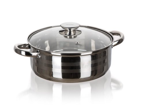 Rajnica 28 cm, so sklenenou pokrievkou, 6,6 l, nerez, LIVING. objem: 6,6 l priemer: 28 cm výška: 11 cm materiál: nerez hrúbka steny: 0,5 cm hrúbka dna: 2,5 cm materiál držadiel: nerez materiál pokrievka: …