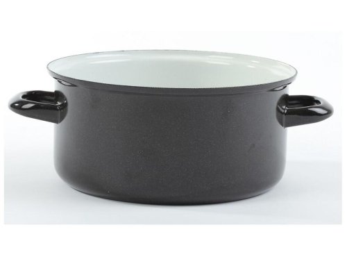 objem: 8 l priemer: 28 cm výška: 15,5 cm hrúbka plechu: 1-1,2 mm vnútorná farba: biely granit vonkajšia farba: čierna s bielou pehou