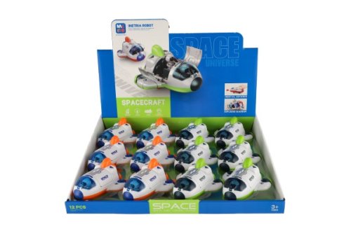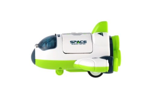 Raketa na zotrvačník, ktorá nesmie chýbať žiadnemu milovníkovi vesmíru. Raketoplán aj kabína sa dá otvoriť. Obsahuje aj figúrku kozmonauta. Veľkosť rakety: 10 x 11 cm Vhodné pre deti od 3 rokov