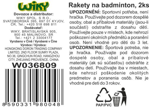 Rakety na bedminton set. 2 rakety súčasťou. Dĺžka 63 cm. Košíky nie sú súčasťou. 2 varianty - modrá, ružová.