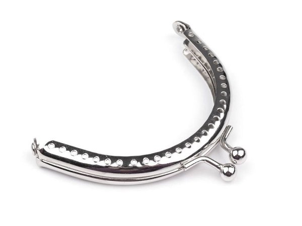 Kovový rámček so zapínaním na výrobu peňaženky. Rámček je určený na našitie, kedy sa látka dovnútra vloží a ručne prešije cez dierky, ktorých rozpätie je 4 mm. Dierky sú len na vonkajšej strane rámčeka. Tento typ zapínania využijete určite na akýkoľvek typ peňaž enky. Vyrobené z magnetizujúceho kovu.