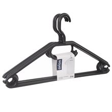 Čierne plastové ramienko s otočným háčikom na zavesenie Možnosť zavesenia nohavíc na spodnej tyčke, sukní na postranné háčiky, zavesenie šatky či kravaty na stredovom háčiku Balenie obsahuje 5 ks ramienok Rozmery: …